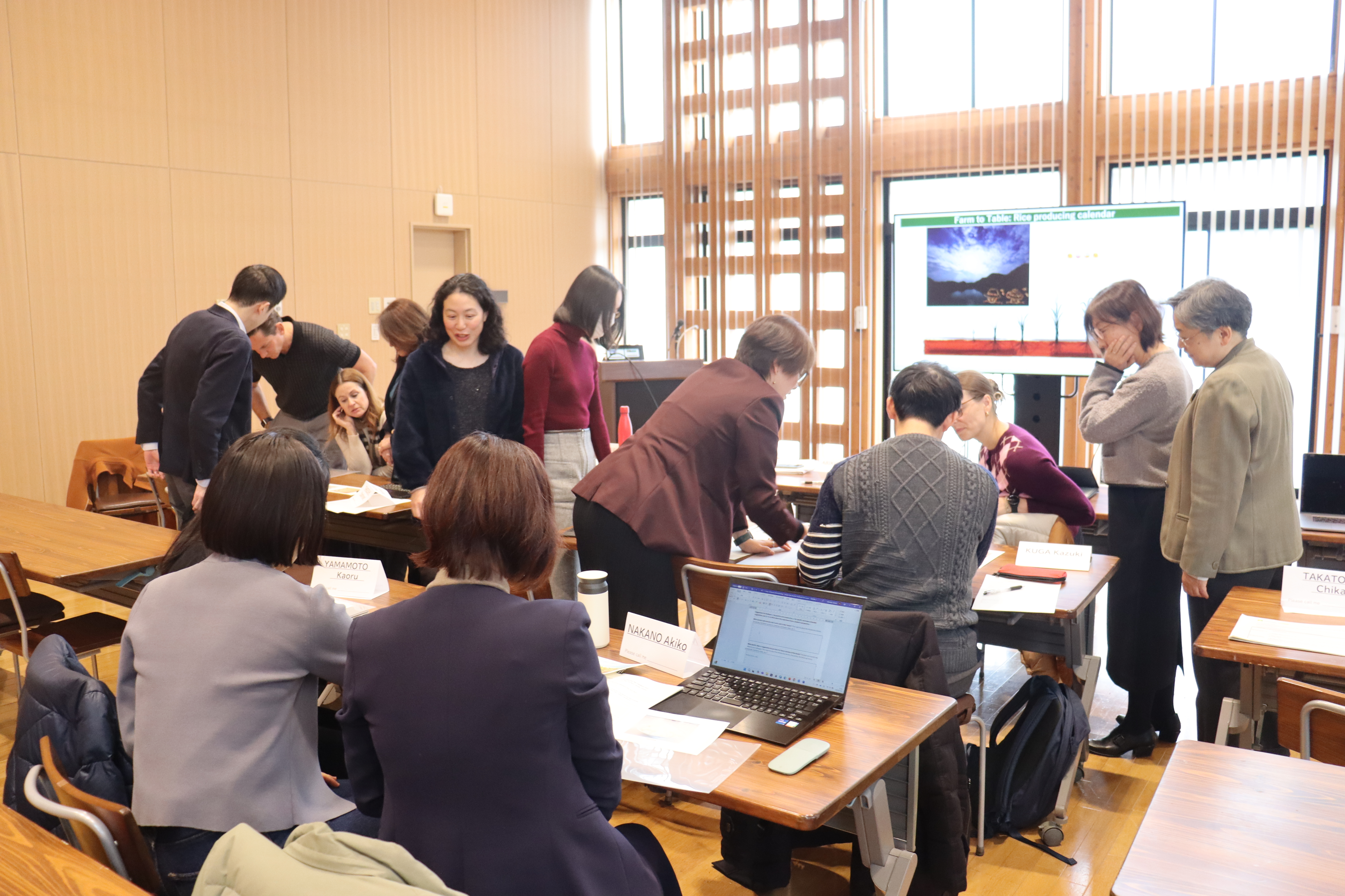 研修の後半では、研修生各自が、実際の授業を想定した模擬授業を行いました。海外講師からは、それぞれの模擬授業の良かった点や、さらに改善できる点について、活発なコメントが寄せられました。